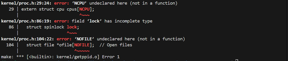 3. kernel/defs.h 파일에 getppid() 함수 선언
