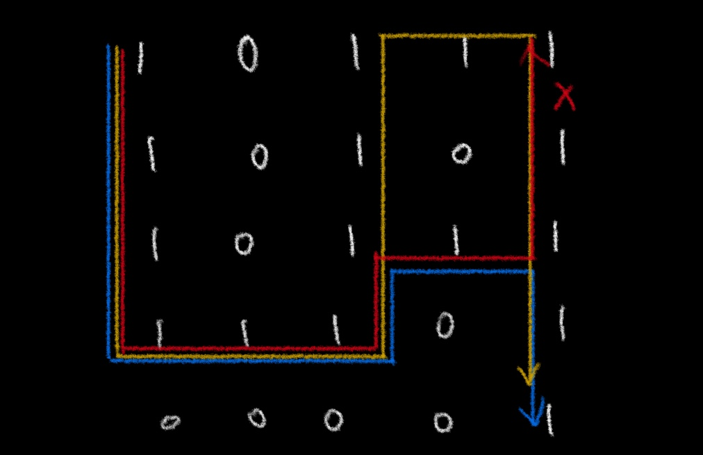 그래서 결국 BFS로 바꾸어 접근했다. (통상적으로 모든 위치 방문을 위해서는 DFS를, 효율적 방문을 위해서는 BFS를 사용한다고 하기도 한다.) 좌표 (0, 0)에서 0이 아닌 값을 가진 위치로 하나씩 더해가며 가는 것이다.