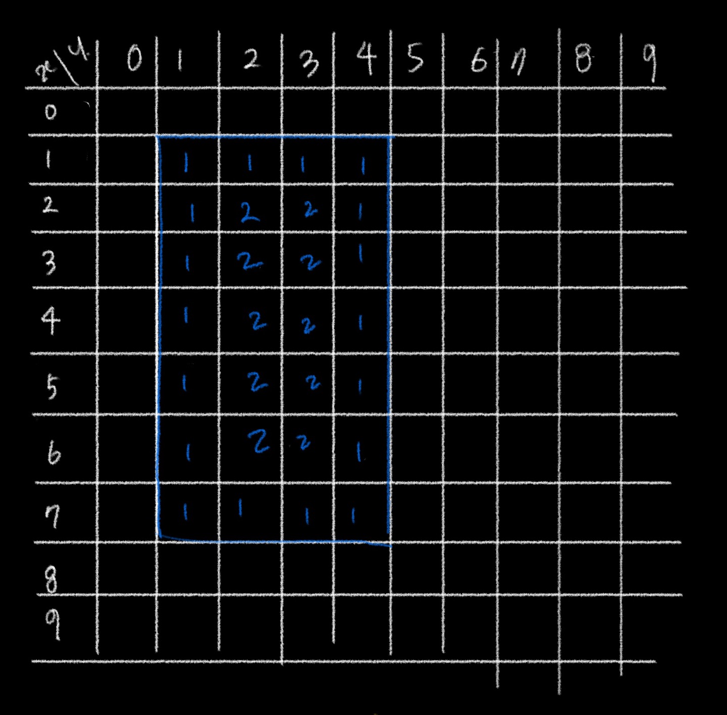 1. 직사각형의 테두리는 1, 내부는 2로 표기한다.