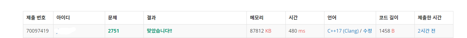 이렇게 두 개의 주요한 함수를 써서 정렬을 해주면, 백준에서도 정답 처리가 되는 모습을 확인할 수 있습니다.