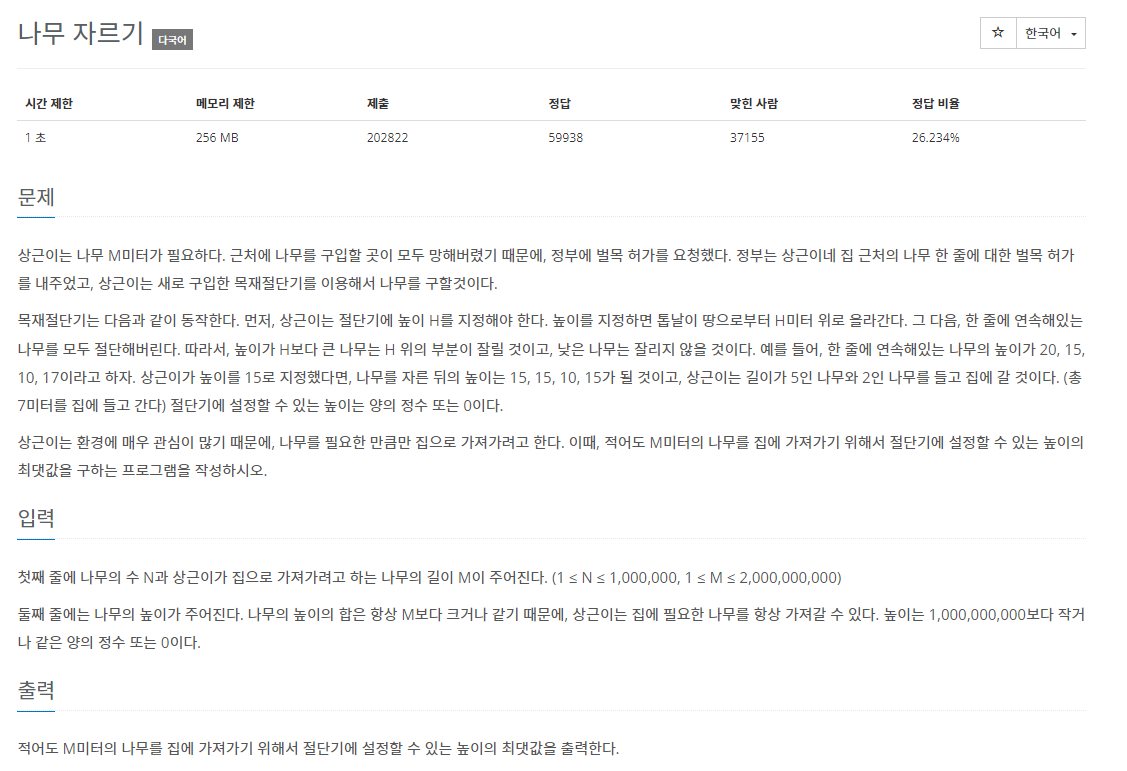 백준 2805번: https://www.acmicpc.net/problem/2805